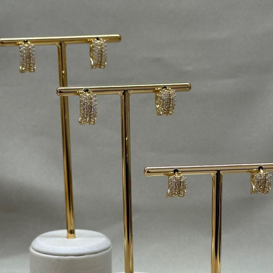 TRIO DE BRINCOS ARGOLINHA CRAVEJADA...