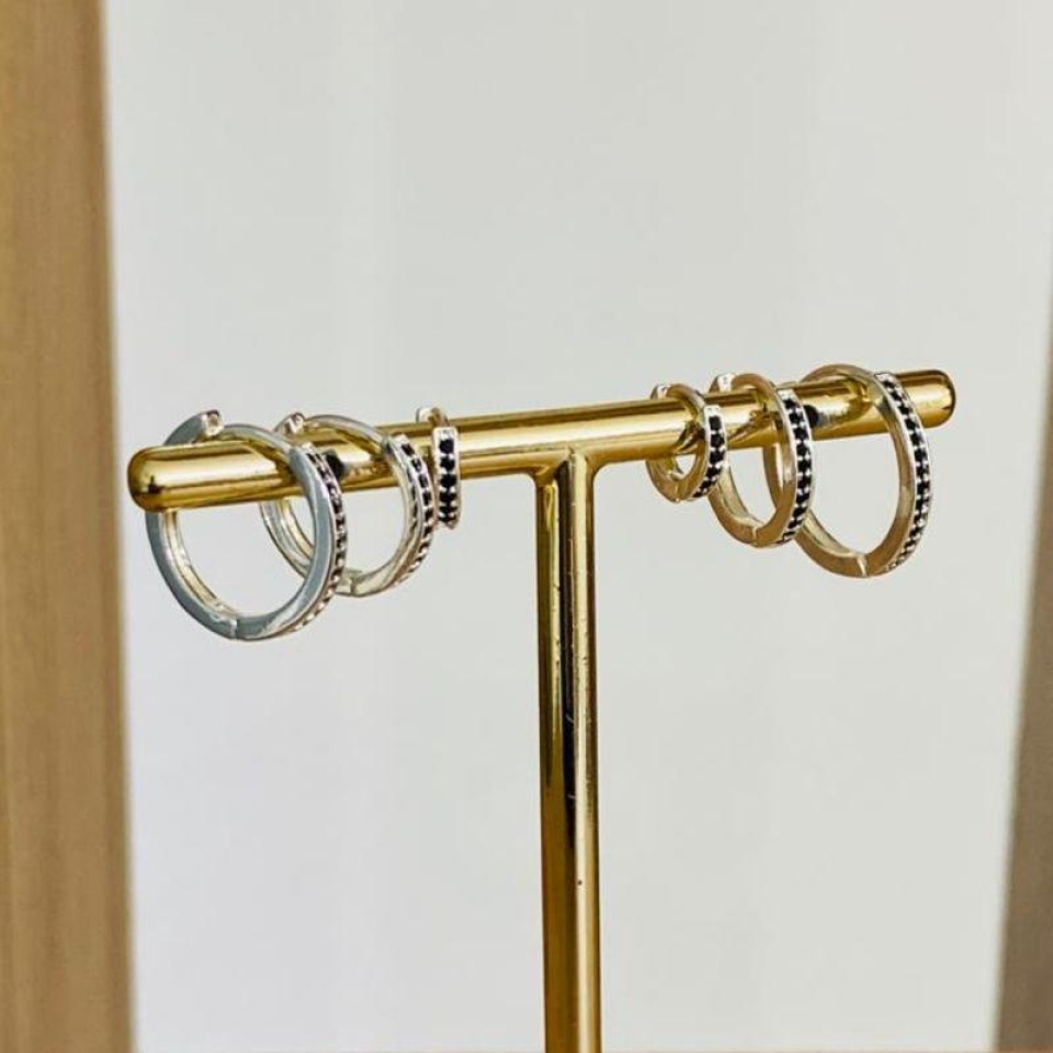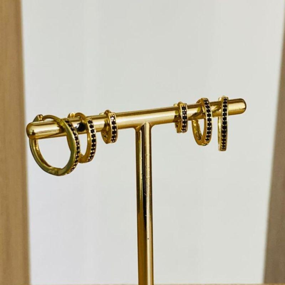 TRIO DE BRINCOS ARGOLINHA CRAVEJADA...