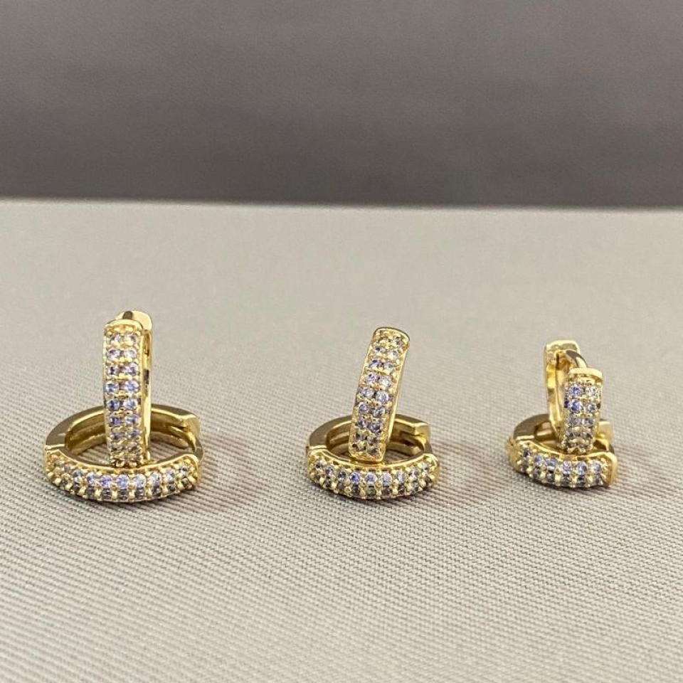 TRIO DE BRINCOS ARGOLINHA CRAVEJADA...