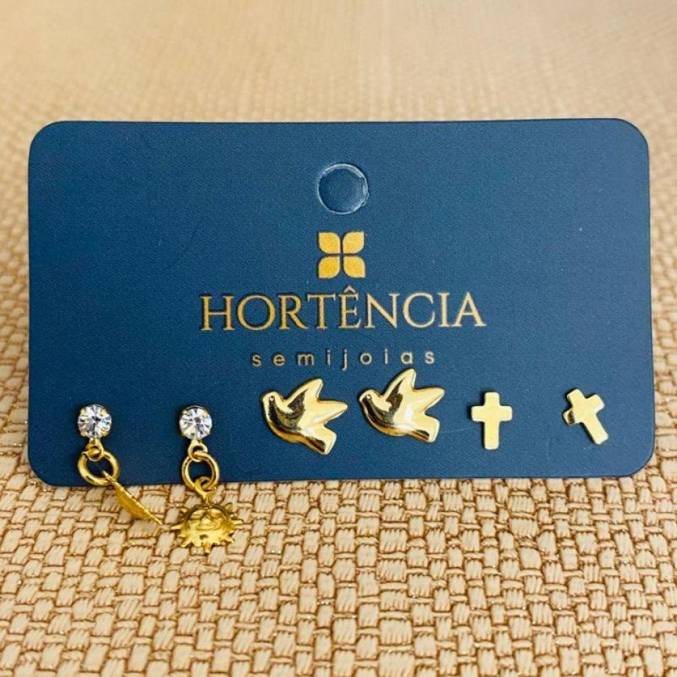 TRIO DE BRINCOS ARGOLINHA CRAVEJADA...